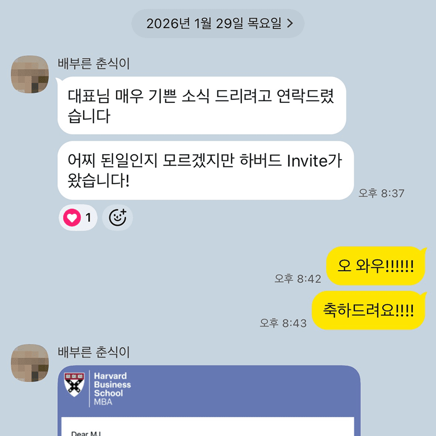 "컨설팅 없이 제가 문제를 처음 보고 썼다면 아마 다 떨어졌겠죠." 스폰서로 MBA를 준비하며, 기본 에세이 2개로 8개 학교를 완주한 고객님의 이야기.